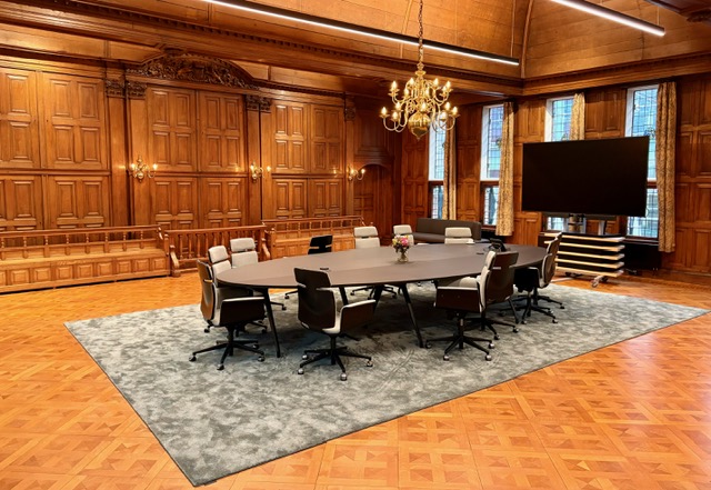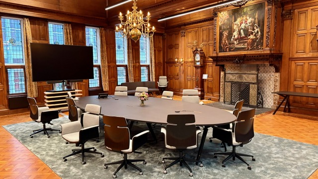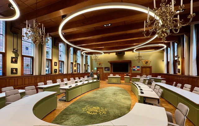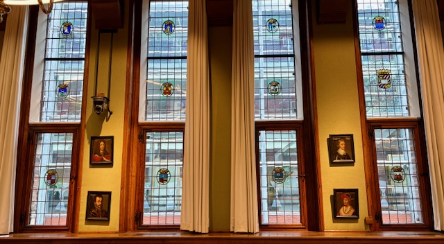 We zagen o.a. de Statenzaal, de gedeputeerdenkamer en een gang waar veel