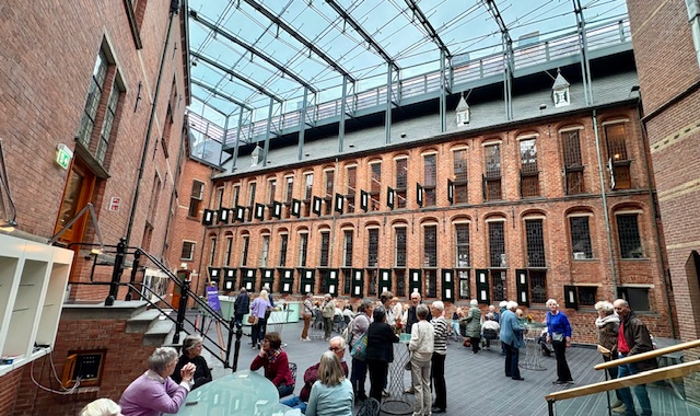 De gidsen vertelden ons veel over de historie van het gebouw, o.a. dat het gebouw in het Stadsboek van de stad Groningen in 1425 als Latijnse school “Sint Maarten” wordt vermeld.